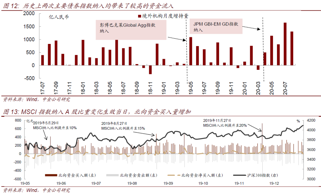 去年9月富时罗素宣布计划将中国国债纳入WGBI,此后中金固收研究团队预计,如果按照5%-6%比例纳入中国国债,将带来1500-2000亿美元的被动型资金流入,而叠加纳入指数刺激的数百亿美元主动型资金,在2021和2022年,预计将有望推动境外机构对国内国债的持仓比重从当时的9.17%升至提升至20%以上,境外机构将成为中国债市的重要投资主体。