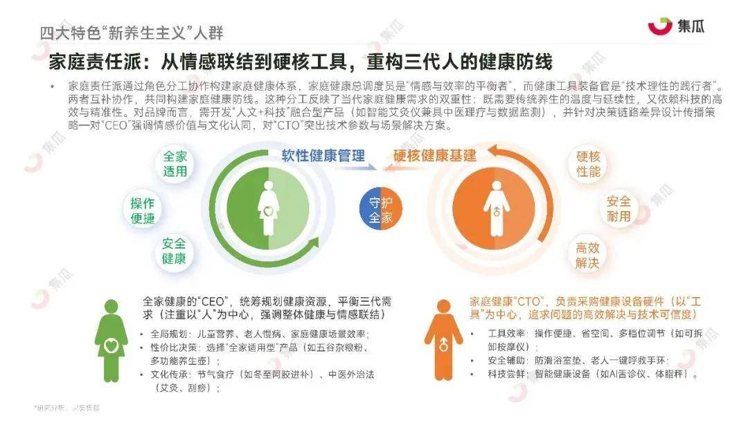 人群特征:以三线及以下城市中年女性为主,健康管理成熟期,需兼顾全家成员需求(儿童营养、老人慢病预防)。