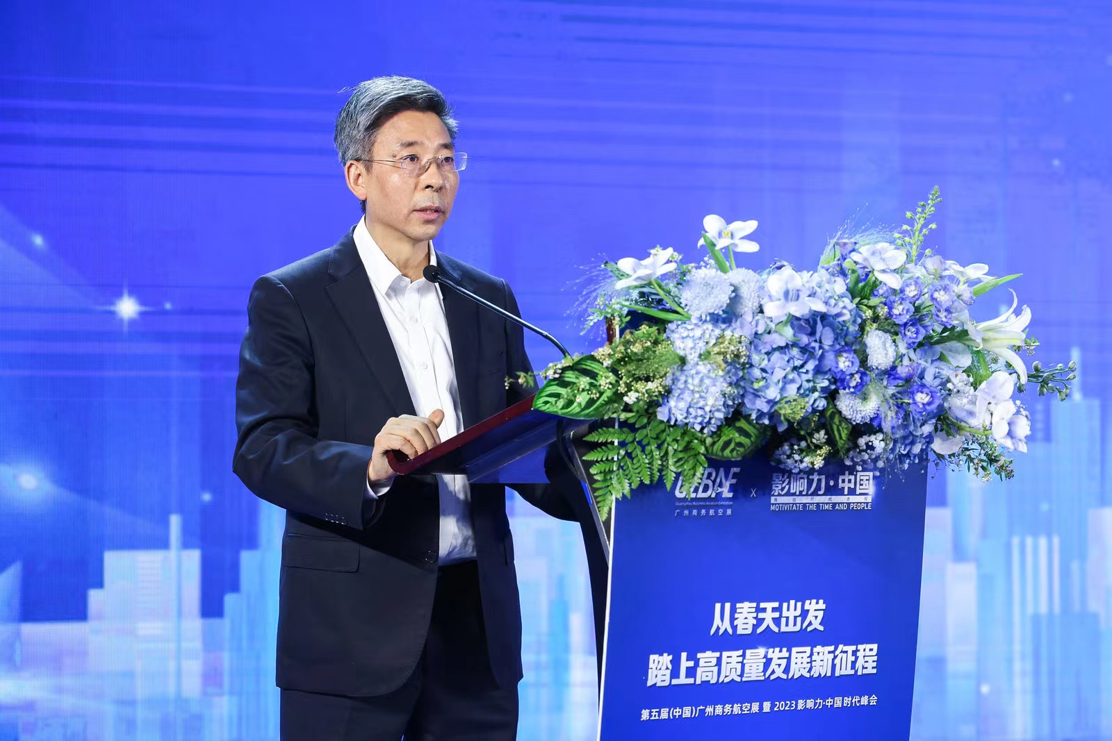 本次活动由广东时代传媒集团和广东翼通商务航空发展股份有限公司联合主办,双方将经济峰会与商务航展创新融合,实现了品牌间的强强联手、跨界合作。峰会以“从春天出发 踏上高质量发展新征程”为主题,邀请多位知名经济学家以及来自银行、券商、基金、上市公司、航空企业的高管出席。他们围绕着中国宏观经济新逻辑、高质量发展新模式、经济改革发展新动能等社会热点议题展开讨论,展望中国经济新未来。