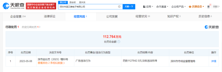 ÌìÑÛ²éAppÏÔʾ£¬±»Íí»áµãÃûµÄÀ¼É½ÇøºÍºÍÍøÂçÎÄ»¯´«²¥¹¤×÷ÊÒ¹«Ë¾ÒÑÓÚ2023Äê04ÔÂ04ÈÕ×¢Ïú¡£ÐÐÕþ´¦·£ÐÅÏ¢ÏÔʾ£¬ÉîÛÚÊÐÏæ¹ð·¢¿Æ¼¼ÓÐÏÞ¹«Ë¾·Ö±ðÓÚ2023Äê10ÔÂ19ÈÕ¡¢2023Äê11ÔÂ29ÈÕÒò²úÆ·(ÉÌÆ·)ÖÊÁ¿Î¥·¨ÐÐΪ£¬±»ÉîÛÚÊÐÊг¡¼à¶½¹ÜÀí¾ÖÁú¸Ú¼à¹Ü¾Ö´¦ÒÔ·£¿î¡¢Ã»ÊÕÎ¥·¨ËùµÃµÄ´¦·£¡£ÉîÛÚÊÐç÷°¬ÃÀµç×ÓÓÐÏÞ¹«Ë¾ÔòÒò“¹ã¸æÎ¥·¨ÐÐΪ”£¬±»ÉîÛÚÊÐÊг¡¼à¶½¹ÜÀí¾Ö·£¿î×ܼÆ112.764ÍòÔª£¬²¢Ã»ÊÕÎ¥·¨ËùµÃ¡£