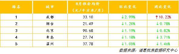 (原标题:你房租降了吗?8月成都、烟台、北京环比降幅居前三)