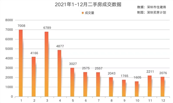 而从全年来看,2021年深圳共成交40699套二手商品住宅,相比2020年的95273套,同比减少57.3%,甚至低于2012年的57203套和2014年的57251套,亦是近10年新低。