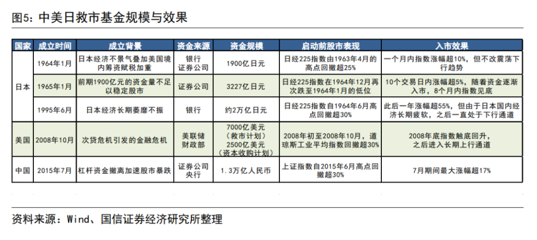 东吴证券宏观陶川团队整理分析了历史上日本、韩国、中国台湾、中国香港以及美国的“平准基金”入(股)市的经验。