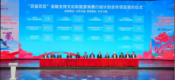 专项对接环节中,中国银联充分发挥平台枢纽作用,参与、促成多项政企文旅合作。中国银联将在春节期间支持25家文旅主管部门发放超7000万元“百城百区”新春文旅消费券,覆盖消费者“吃住行游购娱”全流程;黑龙江、吉林、辽宁、河北、上海、广东、深圳等7地文旅主管部门与当地银联分公司、中国农业银行分行签约,探索文旅消费跨区、跨场景引流新业态;哈尔滨文旅局与兴业银行哈尔滨分行、哈尔滨银行总行、中国银联黑龙江分公司签约,深入践行“冰天雪地也是金山银山”理念,谱写高质量发展的“冰雪”新篇章。