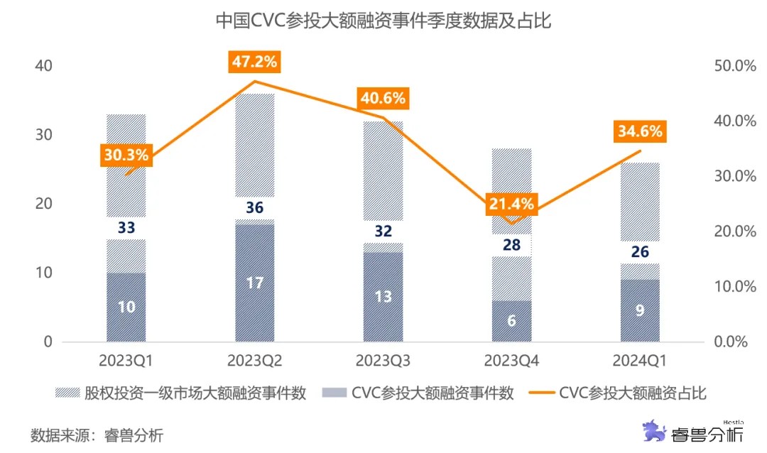 一季度大额融资事件CVC参与度34.6%