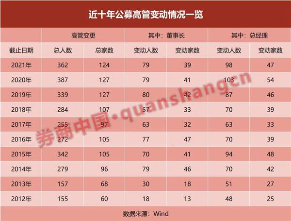 而从近三年数据看,2019年-2021年,公募基金行业每年都有上百家公司存在高管变动,涉及超300人。