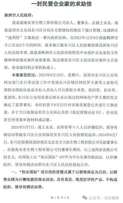 【编者按】法讯独家收到一封湖南民营企业家的求助信,现全文发出,不代表本号观点,供各位网友甄别。